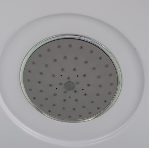 Наличие верхнего тропического душа на потолке кабины. Специальная насадка разделяет поток воды на мелкие брызги, которые могут быть смешаны с аромамаслами. Рекомендуется для расслабления, например, перед сном.