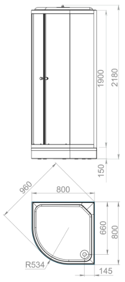 Форма душевой кабины в проекции сверху.