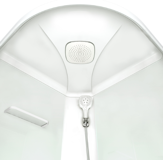 Наличие верхнего тропического душа на потолке кабины. Специальная насадка разделяет поток воды на мелкие брызги, которые могут быть смешаны с аромамаслами. Рекомендуется для расслабления, например, перед сном.
