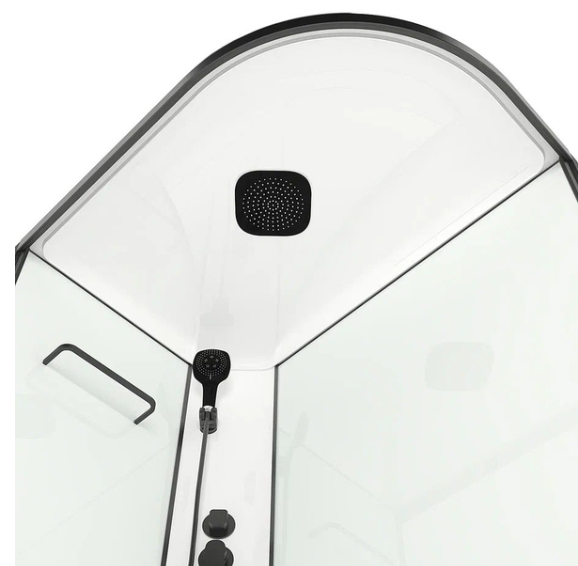 Наличие верхнего тропического душа на потолке кабины. Специальная насадка разделяет поток воды на мелкие брызги, которые могут быть смешаны с аромамаслами. Рекомендуется для расслабления, например, перед сном.