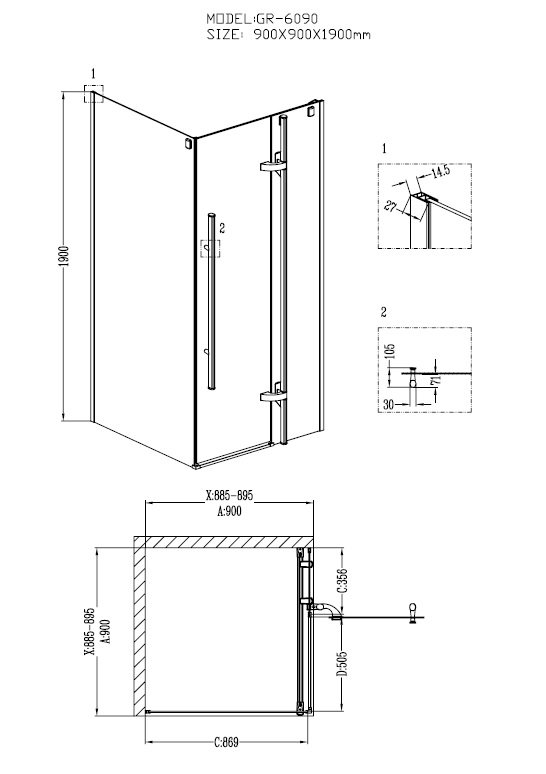Купить Душ.ограждение GR-6090 Style 90*90*190 квадрат, дверь распашная GROSSMAN артикул: 214323 в интернет-магазине ESMAG - Екатеринбург.