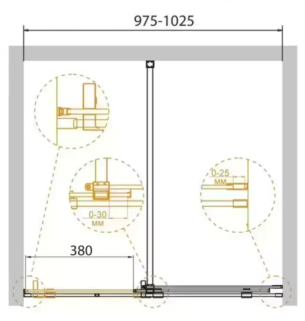 Как правило, пристенный профиль дверцы или стенки регулируется, тем самым позволяя установить изделие в любой проём.