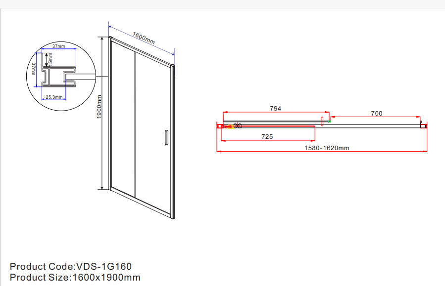 Душевая дверь Garda VDS-1G160CH, 1600, хром, стекло шиншилла Vincea в г.Екатеринбург