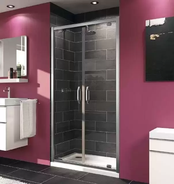 Двойная распашная душевая дверь, возможна не только установка в нишу, но и комбинация с боковой стенкой.