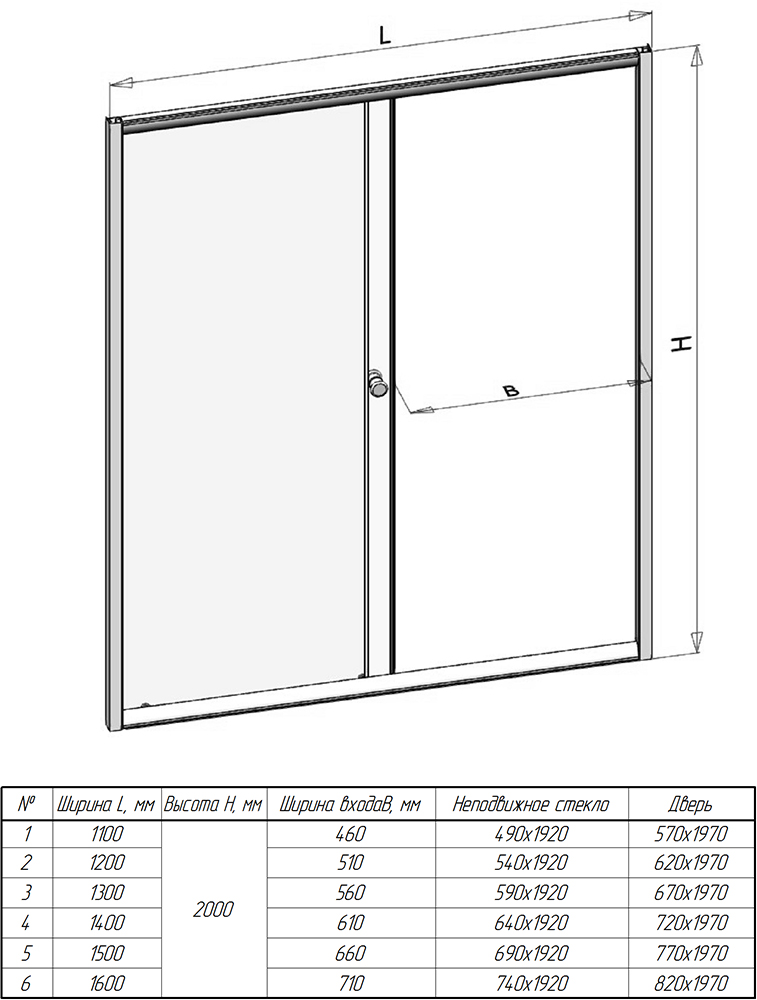 Ширина перегородки составляет 110 см, высота - 2 метра. Ширина входа при полностью открытой дверце - 46 см.