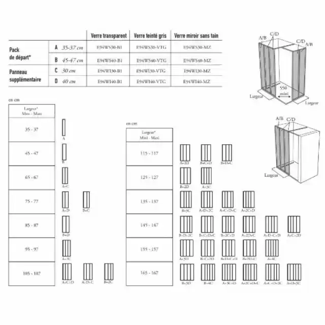 Душевое ограждение для самостоятельного моделирования, размеры от 70 до 170 см включает в себя: