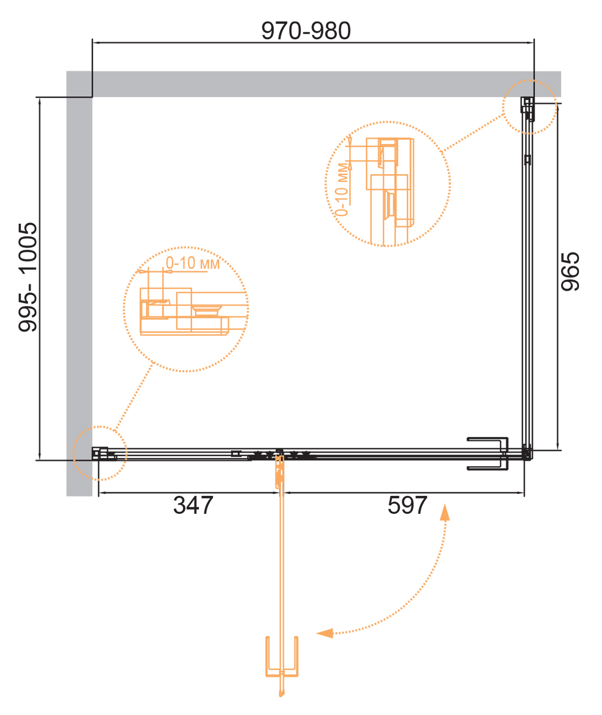 Как правило, пристенный профиль дверцы или стенки регулируется, тем самым позволяя установить изделие в любой проём.