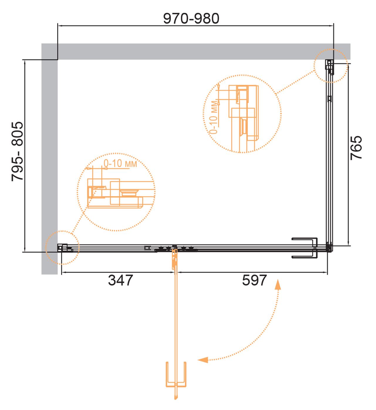 Как правило, пристенный профиль дверцы или стенки регулируется, тем самым позволяя установить изделие в любой проём.