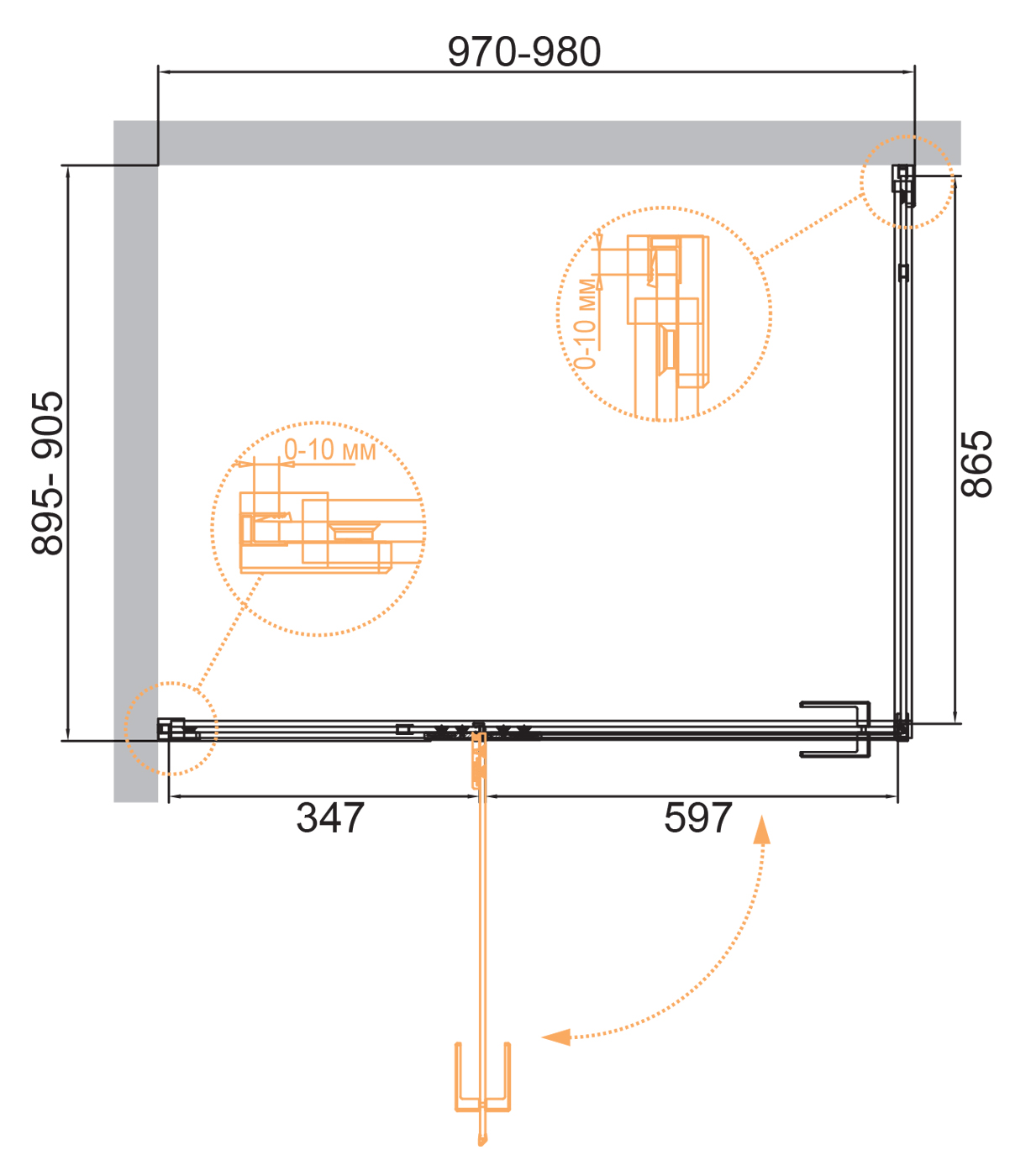Как правило, пристенный профиль дверцы или стенки регулируется, тем самым позволяя установить изделие в любой проём.