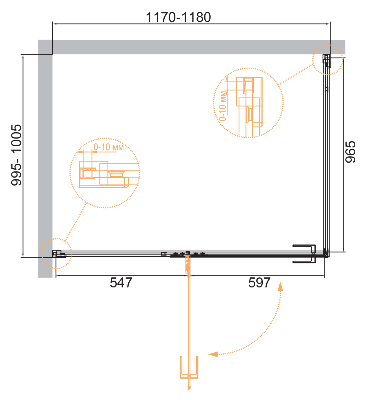 Как правило, пристенный профиль дверцы или стенки регулируется, тем самым позволяя установить изделие в любой проём.