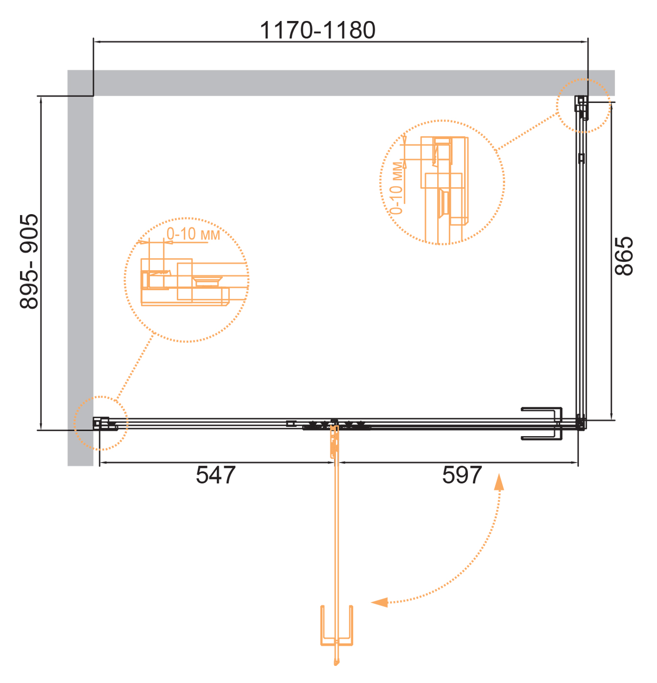 Как правило, пристенный профиль дверцы или стенки регулируется, тем самым позволяя установить изделие в любой проём.