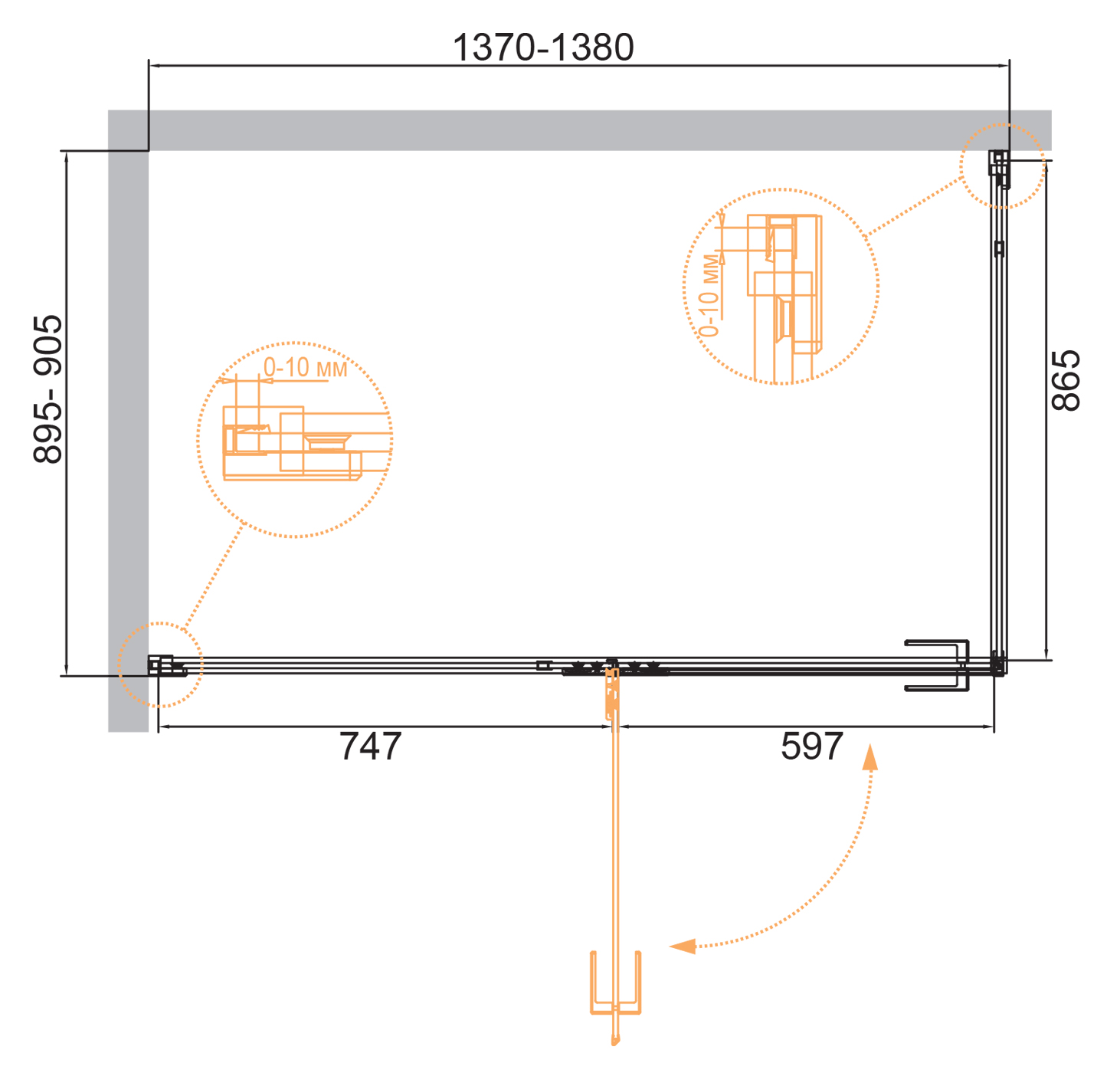 Как правило, пристенный профиль дверцы или стенки регулируется, тем самым позволяя установить изделие в любой проём.