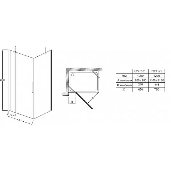 Купить Дверь CONTRA распашная угловая установка 100х200 (прозрачное стекло) E22T101-GA артикул: 133907 в интернет-магазине ESMAG - Екатеринбург.