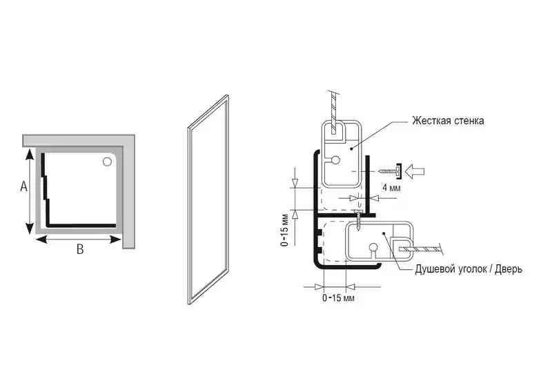 Как правило, пристенный профиль дверцы или стенки регулируется, тем самым позволяя установить изделие в любой проём.