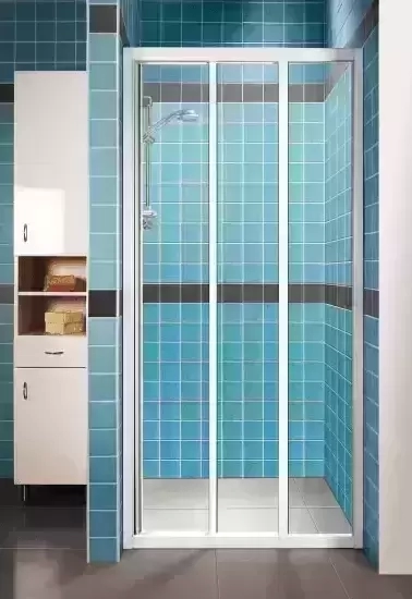 Рамная конструкция обеспечивает абсолютную герметичность и подходит не только для ванных комнат в квартирах, но и для гостиниц или больниц. Вход с "правого" на "левый" можно заменить простым поворотом двери на 180 градусов. Изделие состоит из одной неподвижной и двух подвижных частей.
