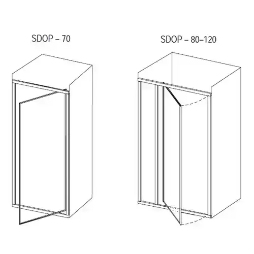 Рамная конструкция обеспечивает абсолютную герметичность и подходит не только для ванных комнат в квартирах, но и для гостиниц или больниц. Вход с "правого" на "левый" можно заменить простым поворотом двери на 180 градусов. Изделия шириной 80-120 см состоят из одной подвижной и одной вращающейся части. Изделие шириной 70 см состоит из опорной рамы и поворотной двери.