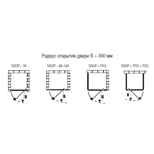 Может быть объединенно только с неподвижной стенкой PSS: с одной для создания душевого уголка формы "L", и с 2 стенками для формы "U".