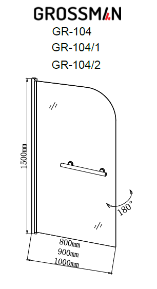 Купить Шторка для ванны GR-104 (150*80) алюминиевый профиль, стекло ПРОЗРАЧНОЕ 6мм GROSSMAN артикул: 214232 в интернет-магазине ESMAG - Екатеринбург.