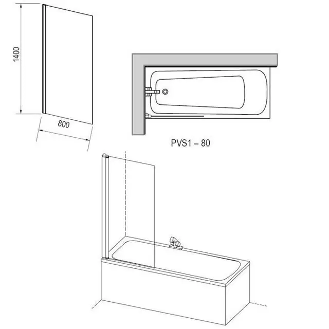 Шторка для ванны PVS1-80 блестящая + Транспарент RAVAK 79840C00Z1