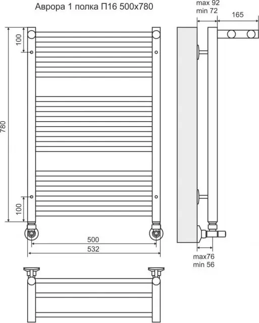 Купить Полотенцесушитель Аврора с полкой П16 500х780 (5+6+5) 4660059582368 Terminus артикул: 183818 в интернет-магазине ESMAG - Екатеринбург.