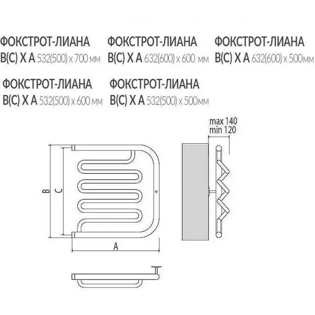 Полотенцесушитель Фокстрот Лиана (1") - 700*532 бп 500 Terminus 4620768880995