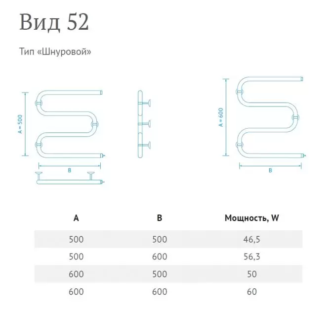 Полотенцесушитель шнуровой Вид 52 Э (3/4") 50*50 31122 Маргроид