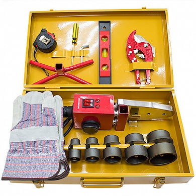 Комплект сварочного оборудования 20-63 (СА-004-63М) ТТ000008542 MeerPlast могут использовать как профессионалы, так и домашние мастера. Позволяет соединить полипропиленовые трубы и фитинги, диаметром 20-63 мм. Одновременно можно использовать две пары насадок. Комплект насадок, диаметром 20, 25, 32, 40, 50, 63 мм, имеет тефлоновое покрытие, что защищает оснастку от царапин и прилипания пластика.